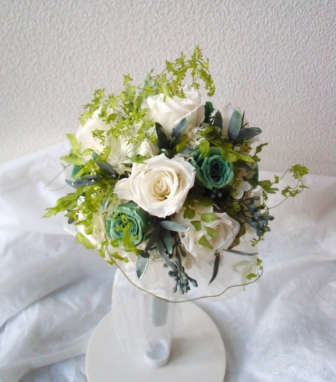 両親へのギフト。直径12cmと小ぶりですが、造花を使わずプリザーブドフラワーのみで制作しています。