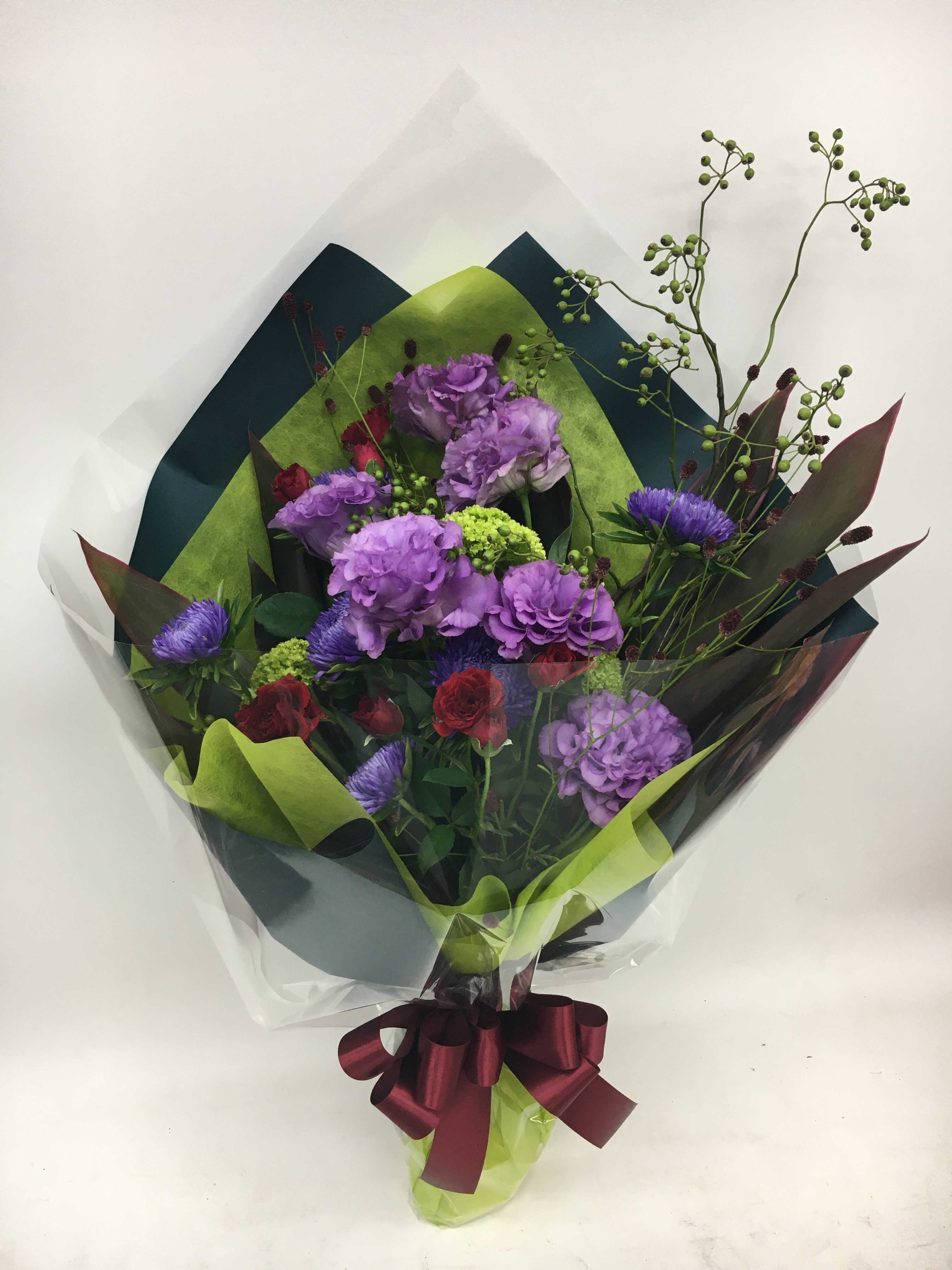 古希のお祝いということで、紫系でも落ち着いた紫系に、というご注文。