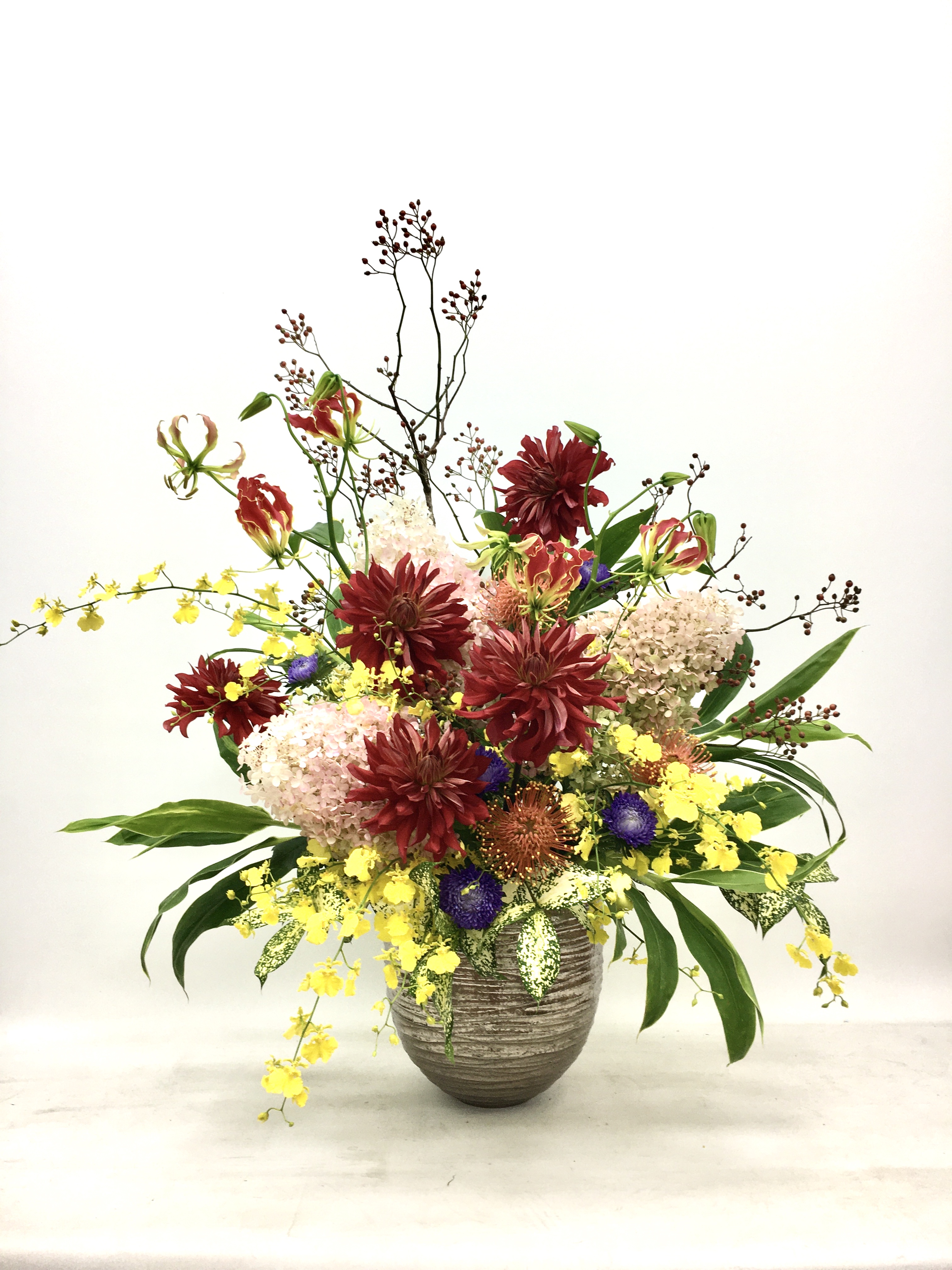 企業様の入社式に。花器はレンタルで、花が終わったら回収。